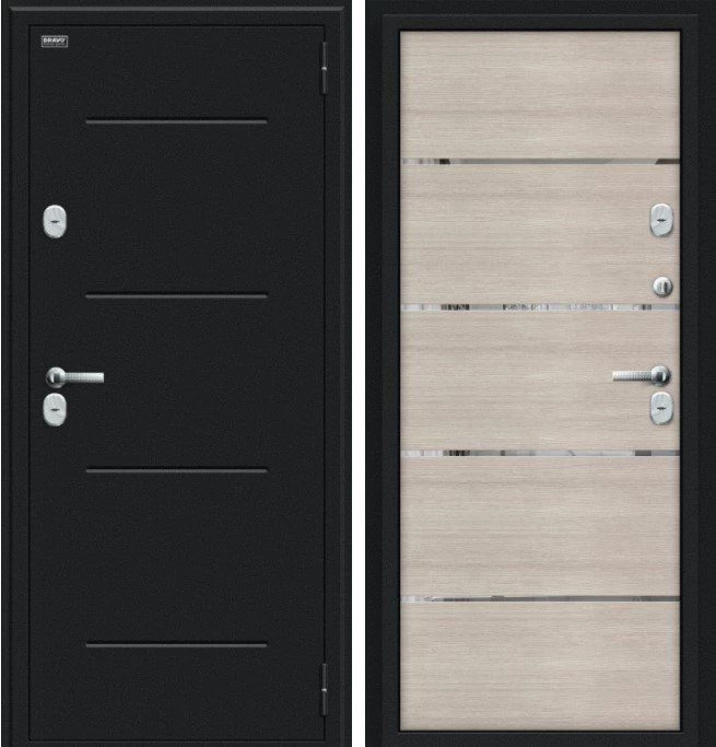 Надежная входная Дверь Браво Thermo Лайн Букле черное/Cappuccino Veralinga премиум класса по цене 48 173 руб. Большая толщина стали защитит от проникновения в ваш дом, квартиру или коттедж. Используется очень качественная фурнитура: замки, цилиндры, ручки, защелки. Покрытие и отделка двери изготовлено под внимательным контролем производителя. Дверь имеет долгий срок службы и гарантию.